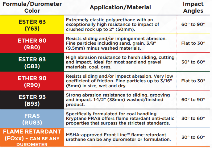 Argonics polyurethane sheets and liners are made with proven Kryptane polyurethane, the top choice for the bulk material handling industry for more than 35 years. • 1/4" thick contrasting color wear indicator |